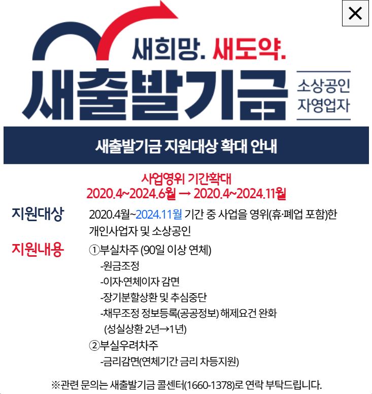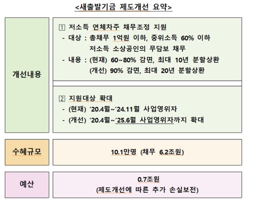 🔹 새출발기금 제도 개선 (저소득 연체 소상공인 대상)