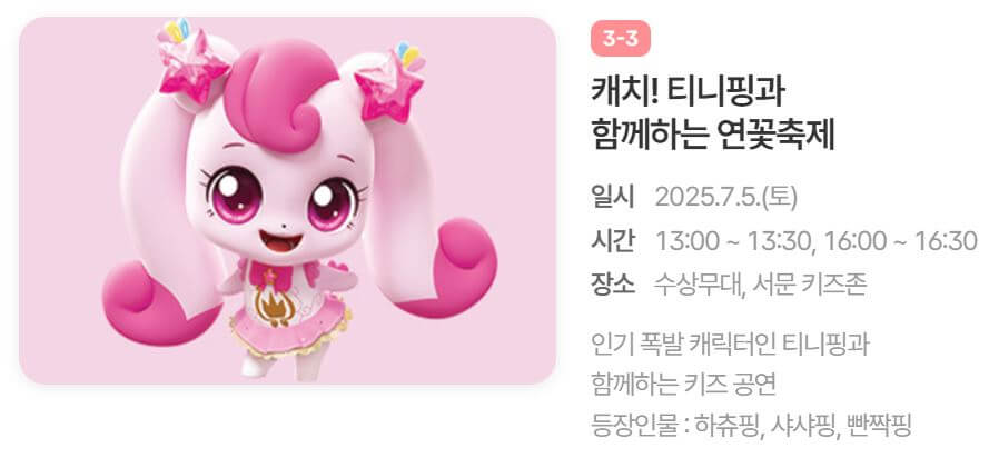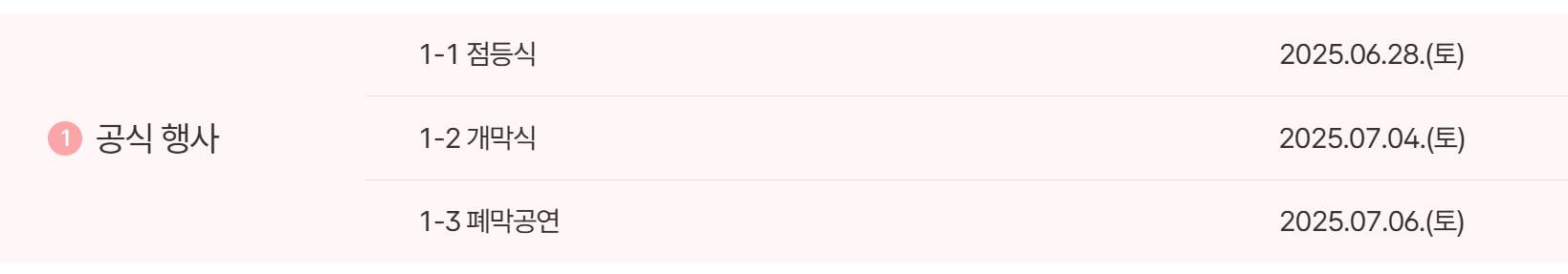 - 일정: 2025년 6월 28일(토), 2025년 7월 4일(금) ~ 7월 6일(일)