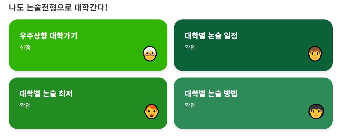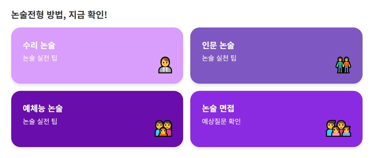 - "논술 커리큘럼"을 참고하여 논술 기초부터 실전 연습까지 체계적으로 학습하세요.