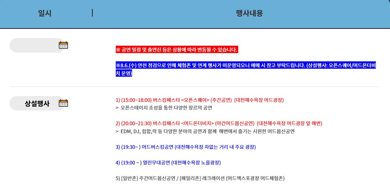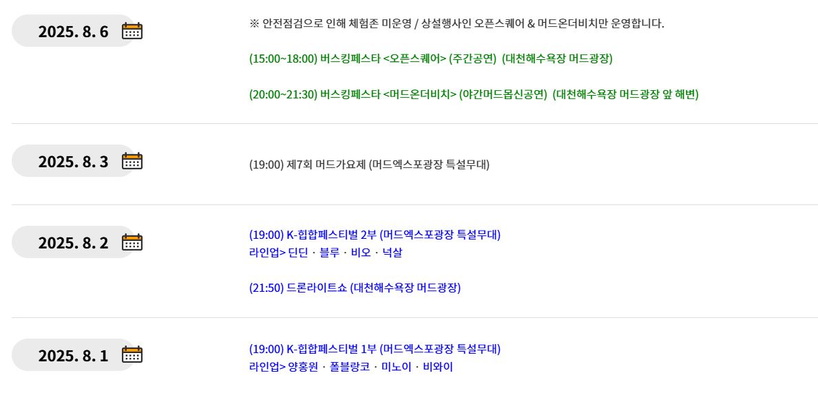 🎉 2025 보령머드축제 일정 안내