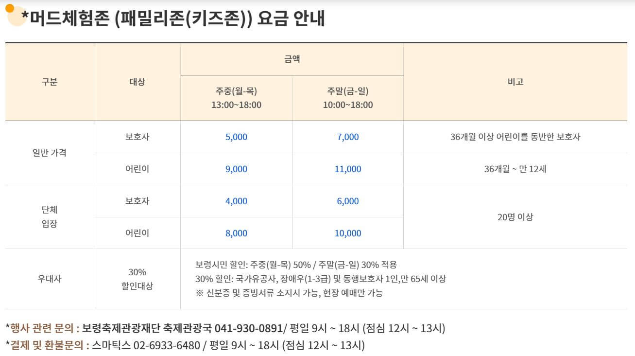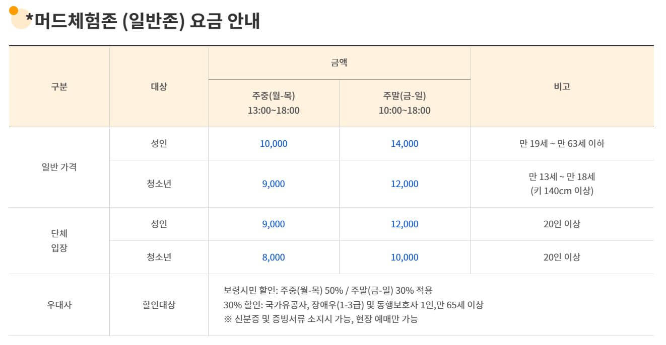 - ⏰ 머드 체험존 운영 시간 확인 후 미리 입장