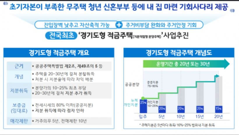 “적금처럼 차곡차곡 주택 지분을 모으세요.” 집값은 오르고 월급은 그대로인 요즘, 내 집 마련은 그야말로 '언감생심'이었습니다. 특히 청년, 신혼부부, 초보 가정에게는 더욱 막막했죠. 그런데 경기도가 전국 최초로 ‘경기도형 적금주택(지분적립형 분양주택)’을 도입한다고 밝혀 큰 주목을 받고 있습니다.