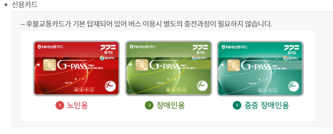 - 단순 무임카드 (선불카드): 순수 교통카드 기능만 있으며, 버스 이용 시에는 충전 후 사용해야 합니다.