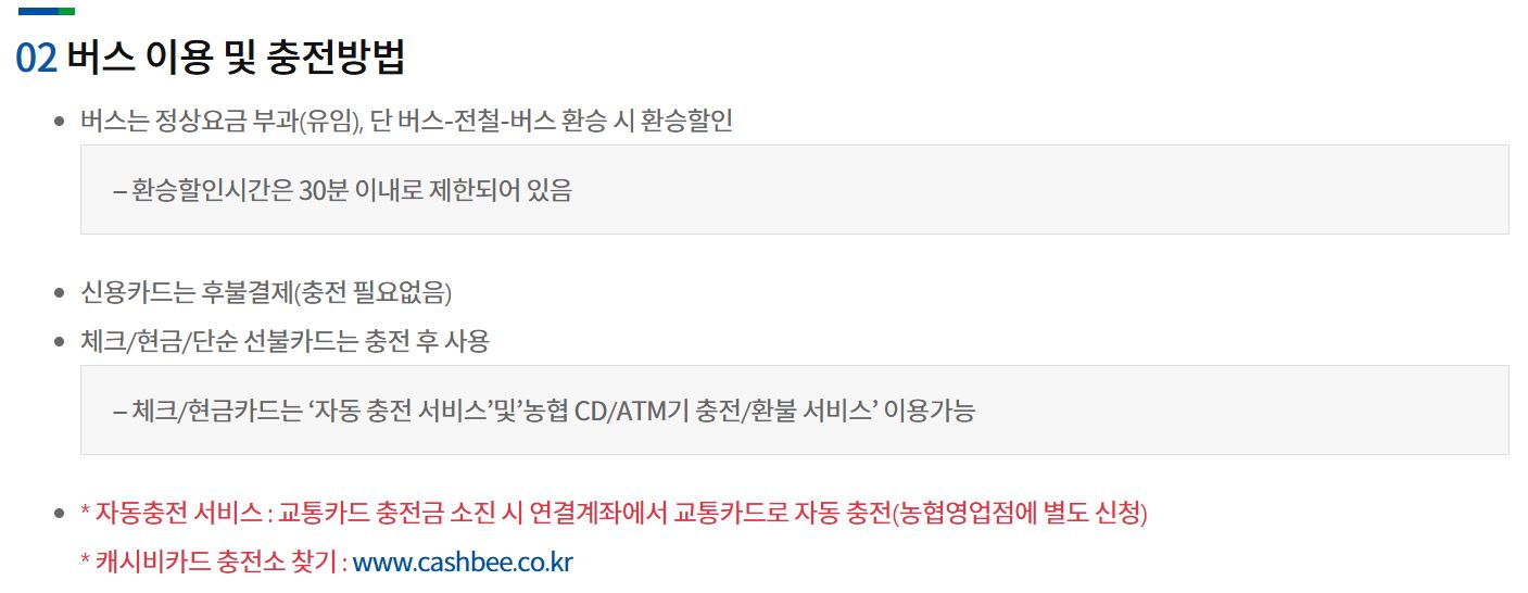 - 부정 사용 금지: 타인에게 대여하거나 양도할 경우 본인은 1년간 사용 및 재발급이 제한될 수 있으며, 부정 사용 시 승차 구간 운임의 30배가 추징될 수 있습니다.