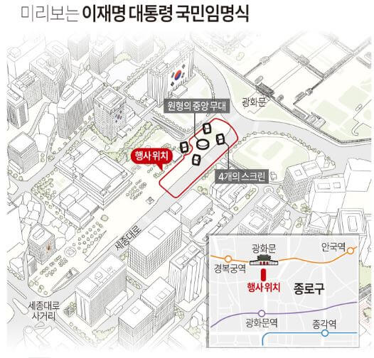 초청 구역: 경호 동선 내 약 1만 명 규모가 초청·배치되며, 국민대표 80인이 대통령에게 임명장을 수여합니다. 임명장은 대통령실에 전시 예정.