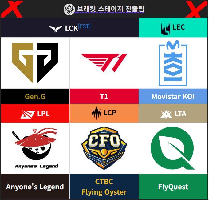 Current Upper‑Bracket Teams: Gen.G, Anyone’s Legend, T1, Bilibili. (gosugamers.net, sportskeeda.com)