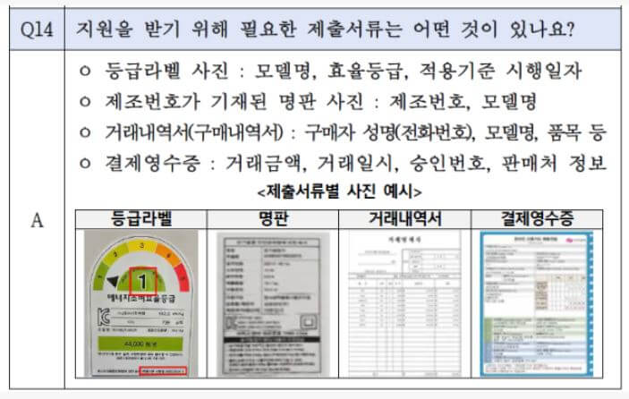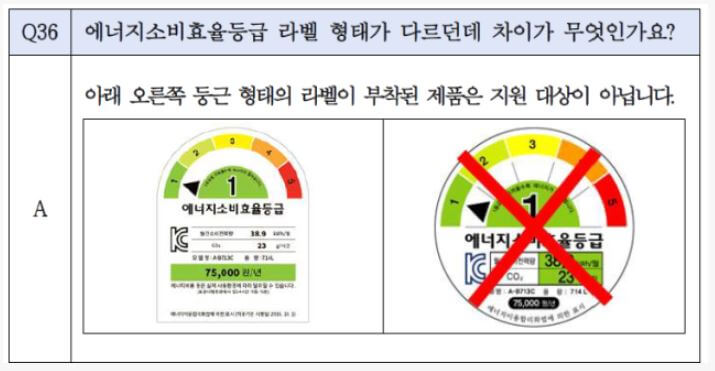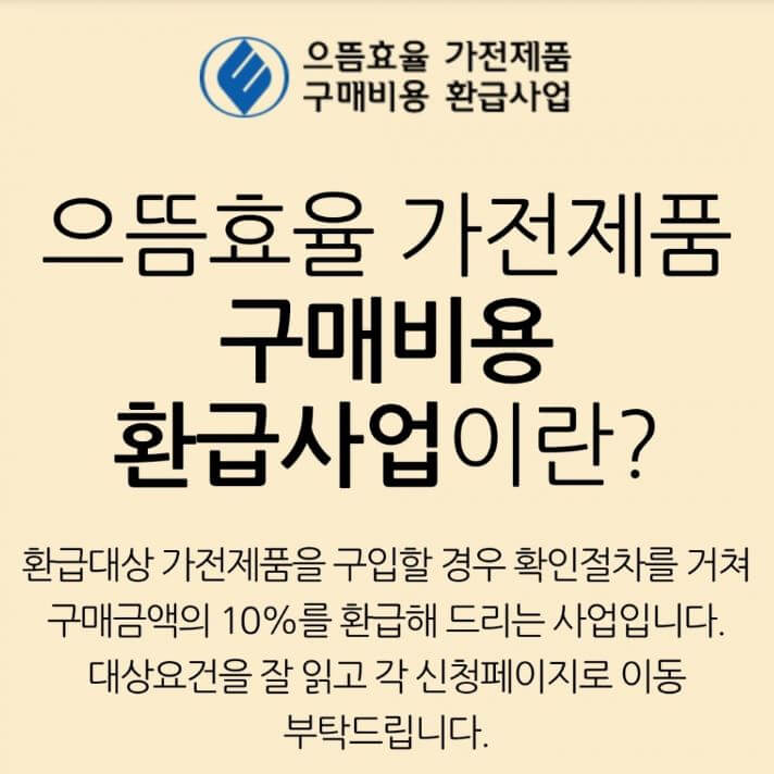 - 1등급 또는 일부 2등급 고효율 가전 구매 시, 구매금액의 10% 현금 환급