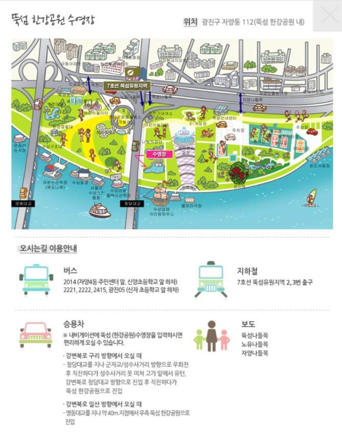 - 휴장일: 우천 시, 미세먼지 주의보 발령 시 휴장 가능